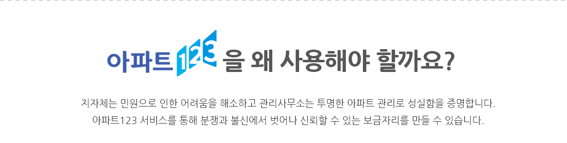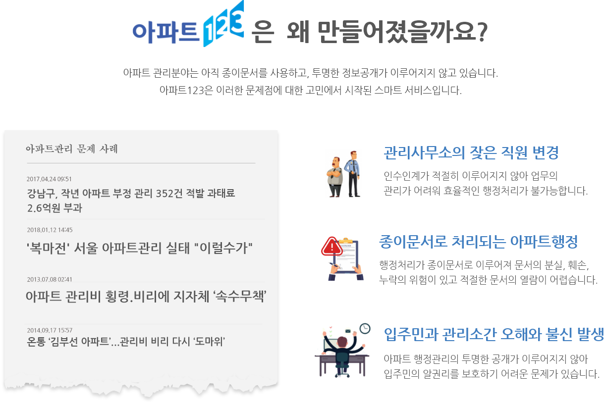 아파트123은 이러한 문제점에 대한 고민에서 시작된 스마트 서비스입니다.