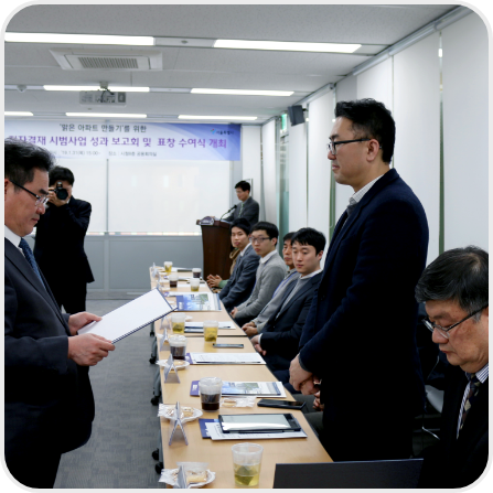아파트 관리의 효율성과 투명성 제고를 위하여 2019년도 6월부터 광주광역시 광산구 4개 단지에 아파트 전자결재 시범서비스를 운영하고 있습니다. 시범사업 착수보고회를 거치면서 문서양식을 최신 트렌드와 규정에 맞는 60여종으로 정리하여 조금 더 아파트 업무에 적합한 효율적 양식으로 개선하였습니다.